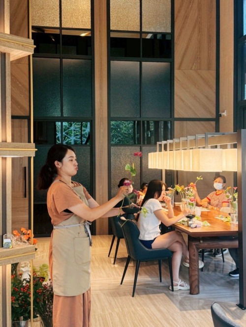 本次活動邀請專業花藝老師親臨指導,帶領住戶體驗日式花藝的靜謐與細膩。參與者在花草間傾聽內心節奏,透過花材介紹、作品示範與現場實作,將自然的柔美化作心靈的療癒,感受「讓生活回歸質感,讓空間盛開溫度」的美好。